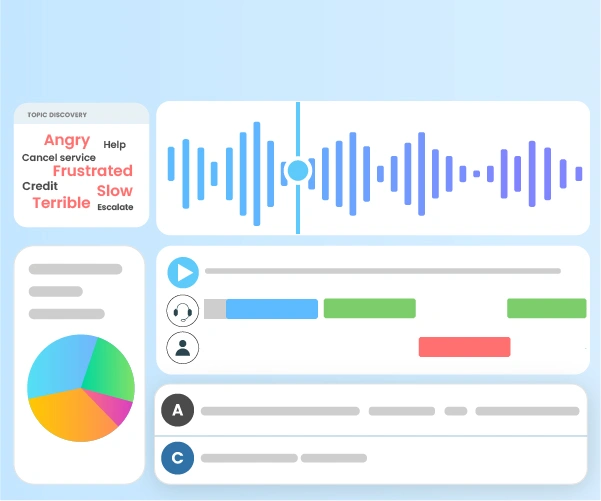 Automatically analyzes customer tone and emotion across voice, chat, and email interactions highlighting frustration, or escalation risk as conversations unfold.