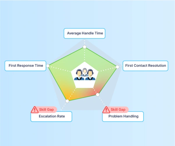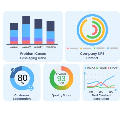 Detailed dashboards and insight identify individual or team level areas of improvement in service quality